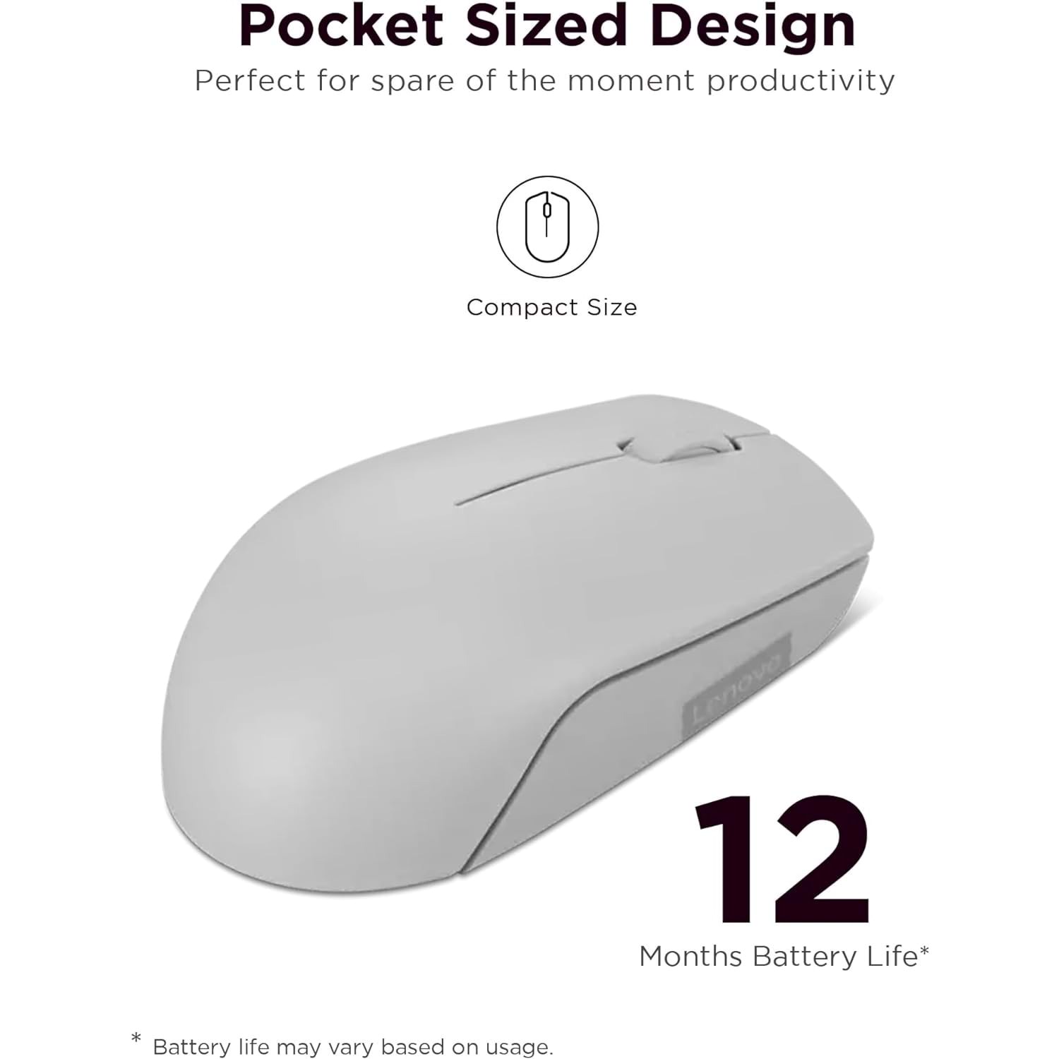 Lenovo 300 Kablosuz / Wireless Compact Mouse, Arktik Gri