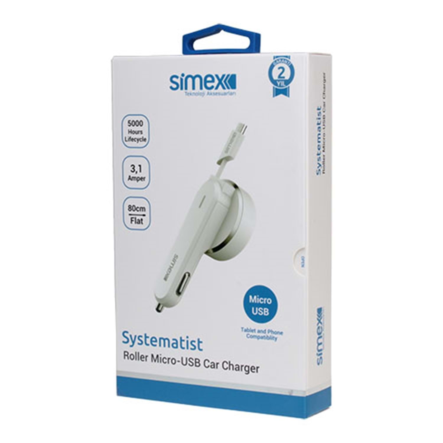 Simex Micro USB Araç Şarj Aleti 3.1A Kırılmaz Garantili Kablo