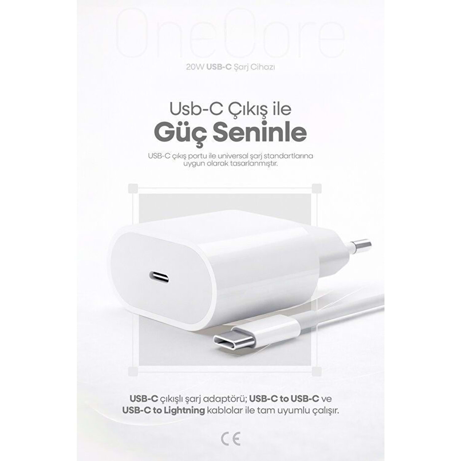 PDAteknoloji 20W USB-C Şarj Adaptörü Beyaz (3 Yıl Garantili) SPS-15