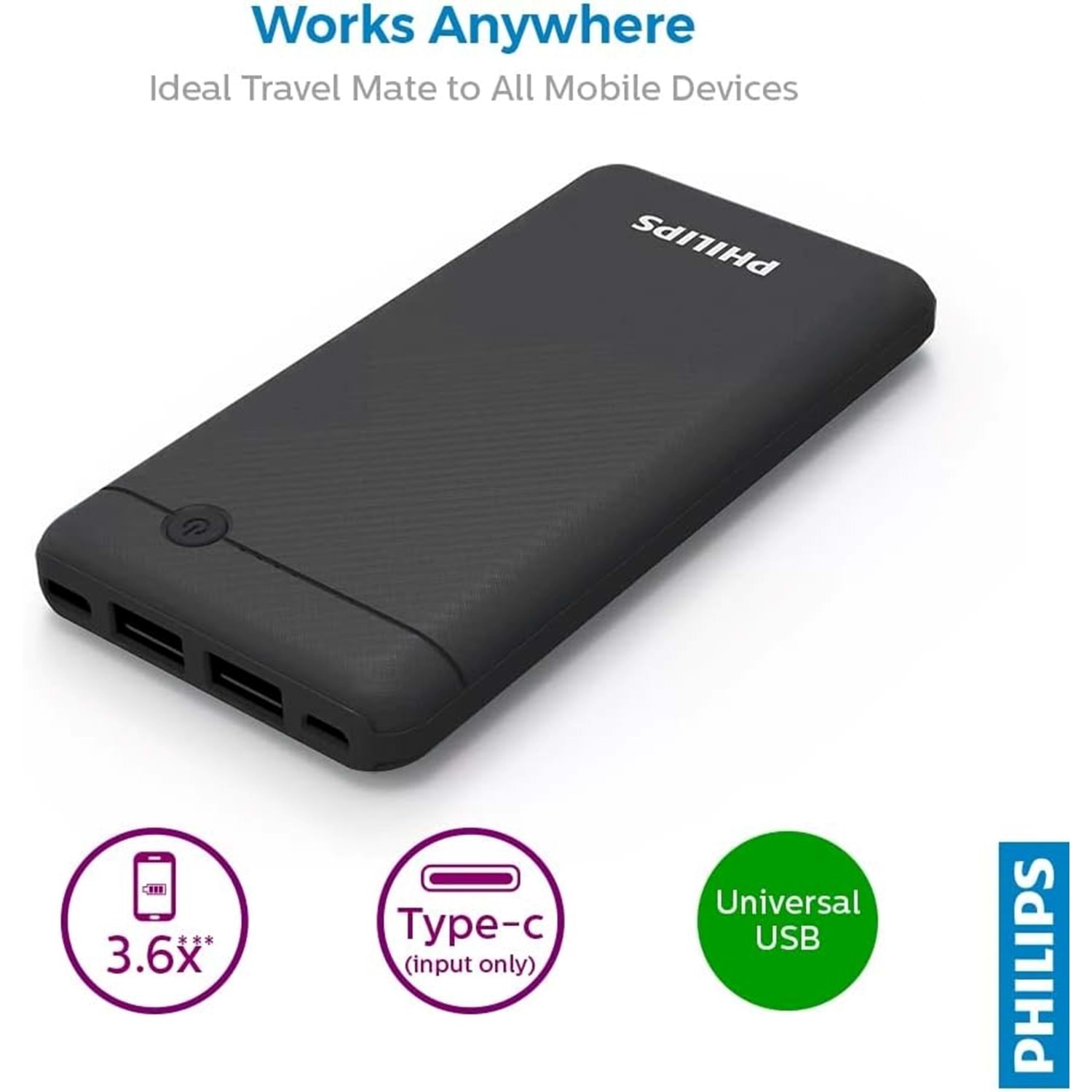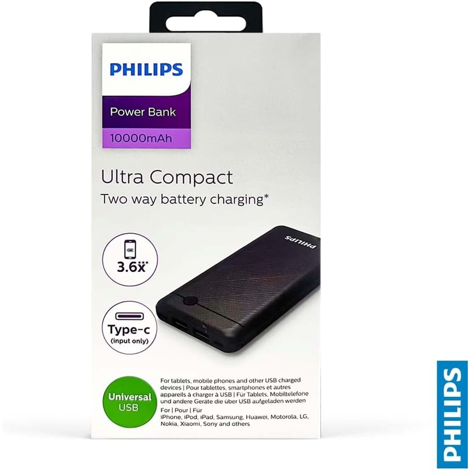 OUTLET Philips 10.000mah Powerbank DLP1710CB - Siyah OUTLET ÜRÜN OUTLETTİR.SADECE KUTUSU YIPRANMIŞTIR. KULLANILMAMIŞTIR.